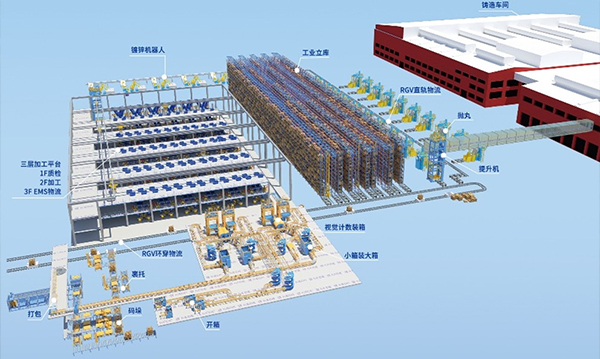 進行工藝升級及自動化物流設備應用,引進立庫模式解決砂箱、砂芯物流轉運等系列問題,實現全程無叉車倒運的一個流生產模式