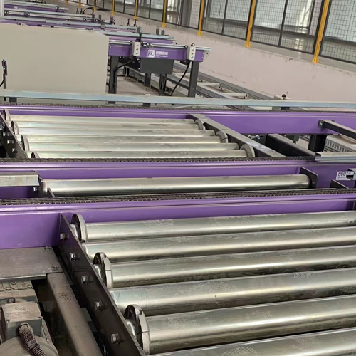 一般與鏈條輸送機配合使用,實現(xiàn)貨物輸送方向的90度轉變。