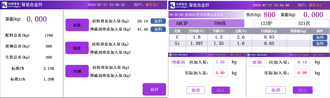FSY-XX-TC型智能合金秤針對鑄造行業電爐熔煉輔料加入場景打造的一款工業級計量產品,集成CPU和HMI系統于一體,通過光譜檢測數據和材質標準并與智鑄云平臺、智鑄云易享版APP、熔煉云小程序等集成,精確計算合金輔料補加量,實現合金加入量數據統計、分析與查詢。