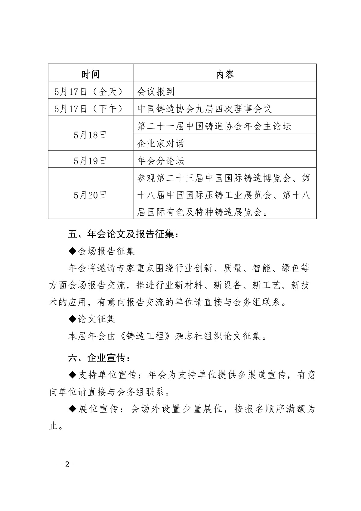【協(xié)會(huì)活動(dòng)】關(guān)于召開“第二十一屆中國鑄造協(xié)會(huì)年會(huì)”的預(yù)通知