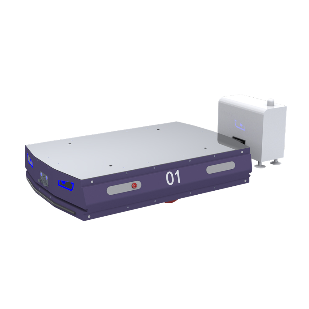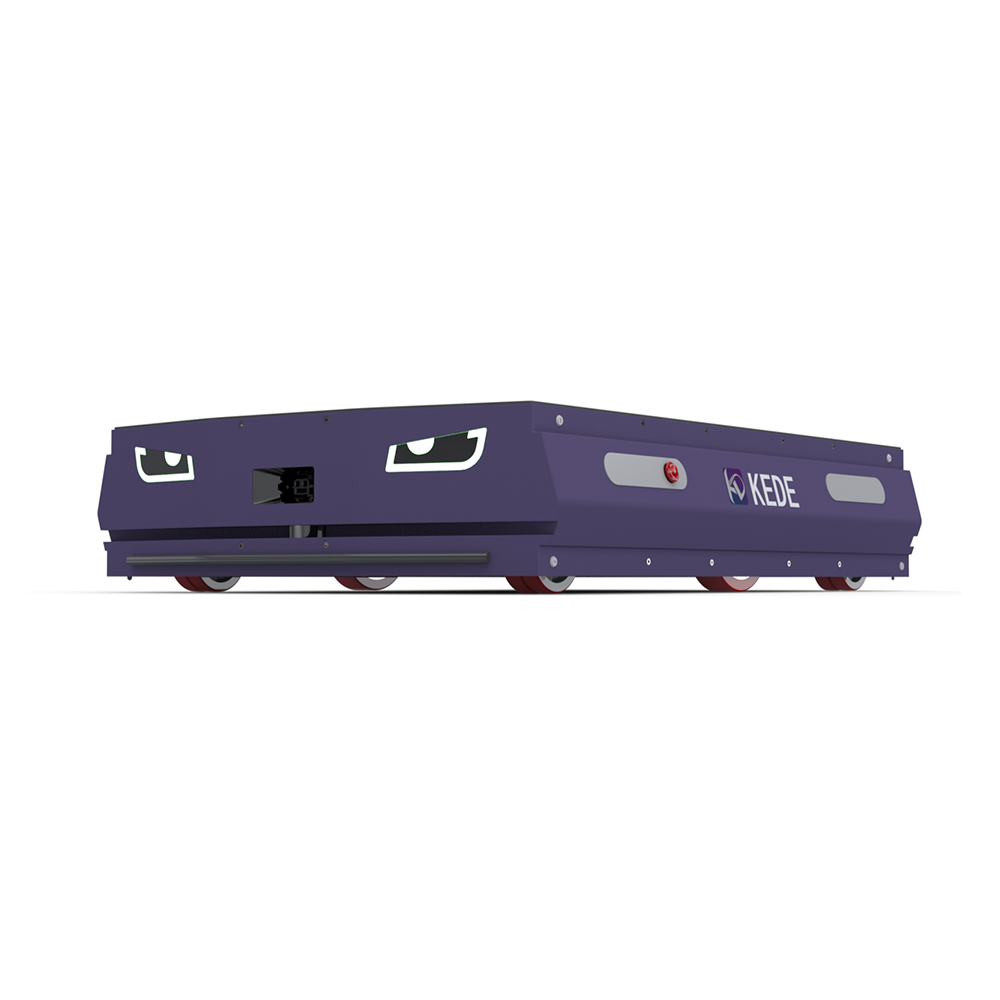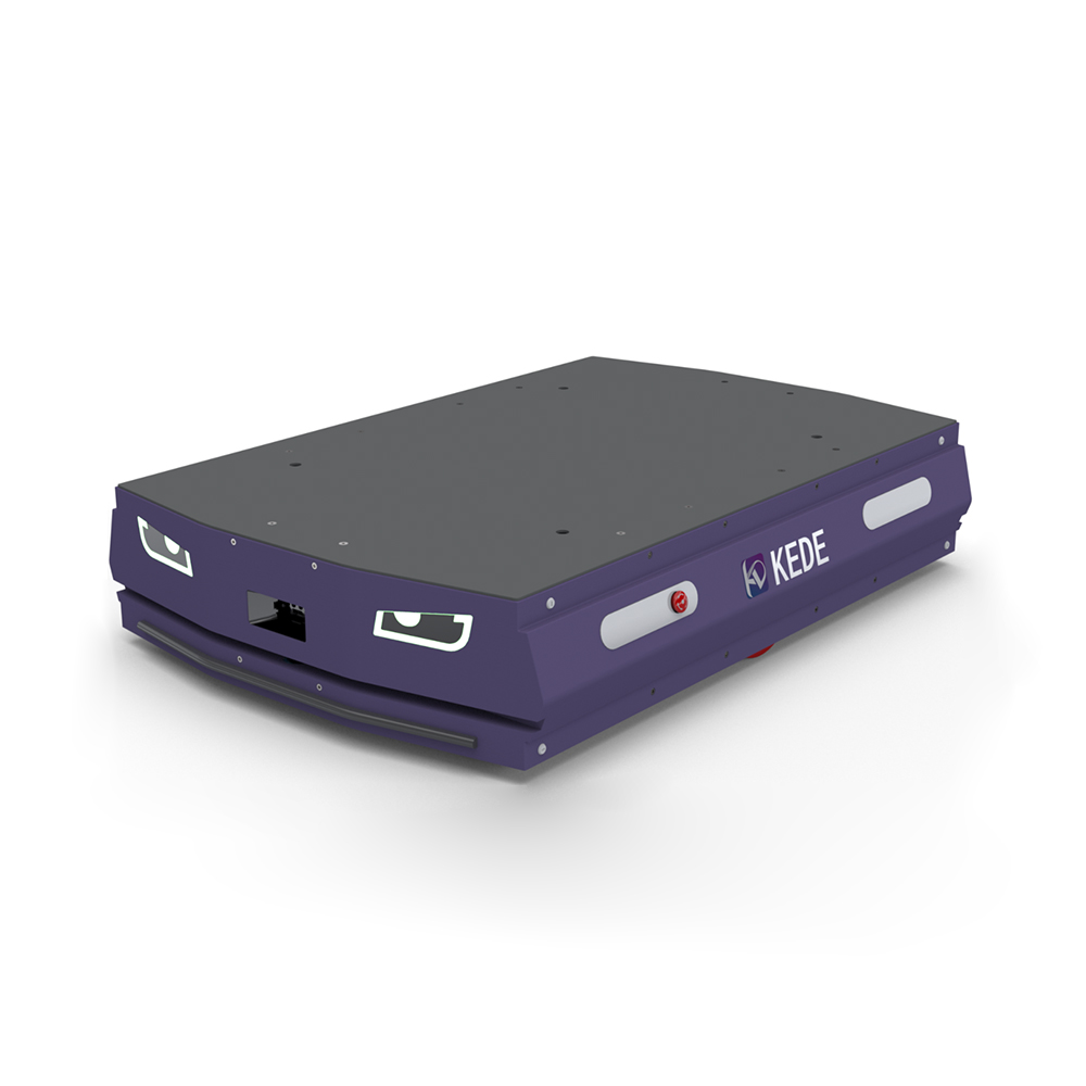 科德智能,擁有多款AMR產品自主研發能力。新一代差速輪AMR,型號KDCS1000,額定負載1T,采用激光SLAM導航方式,配備柔性化底盤設計,使車身運行更平穩、適應性更強、安全性更高。AMR車體整體外形尺寸1350mmX920mm,增大了車體支撐域,同時更加契合1200mmX1000mm的通用托盤及置物平臺尺寸,使車體運行更加穩定。新一代差速輪AMR的高適應性,得益于自主研發的底盤結構。通過鉸接結構,在運行過程中,始終使車體實現三點著地。同時底盤離地高度25mm,單輪浮動5mm,滿足絕大多數車間地面環境要求。雷達配置在距離地面80mm高度處,最大限度檢測地面存在的障礙物。在運行過程中,雷達輻射范圍25m,當檢測到障礙物時,車體可自行減速甚至停止,亦可實現自動繞障等功能。車燈采用狀態燈與氛圍燈的二合一設計方式,造型美觀,一方面可以顯示AMR車體運行狀態,另一方面起到氛圍燈警示效果。車體除配備避障雷達外,前后配備安全觸邊與急停按鈕,實現三重安全防護效果。AMR具備自主充電功能,根據當前電量所處閾值的不同,在任務優先、充電優先、強制充電幾種情況中進行選擇。